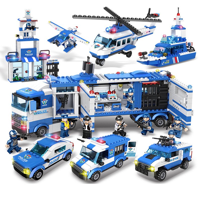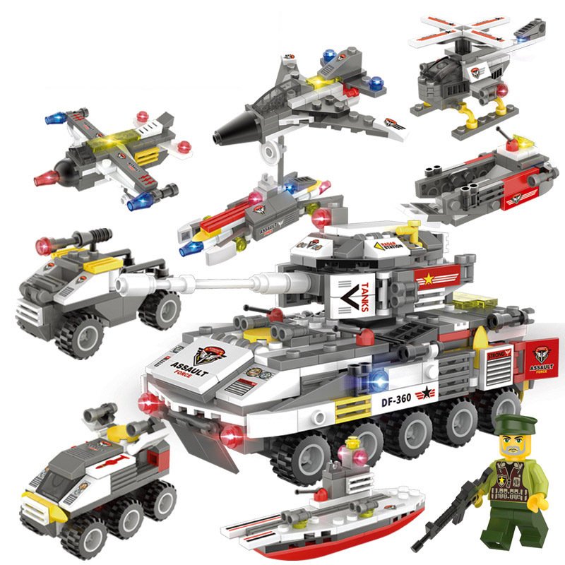 Military aircraft carrier police building blocks children assembled DIY toys