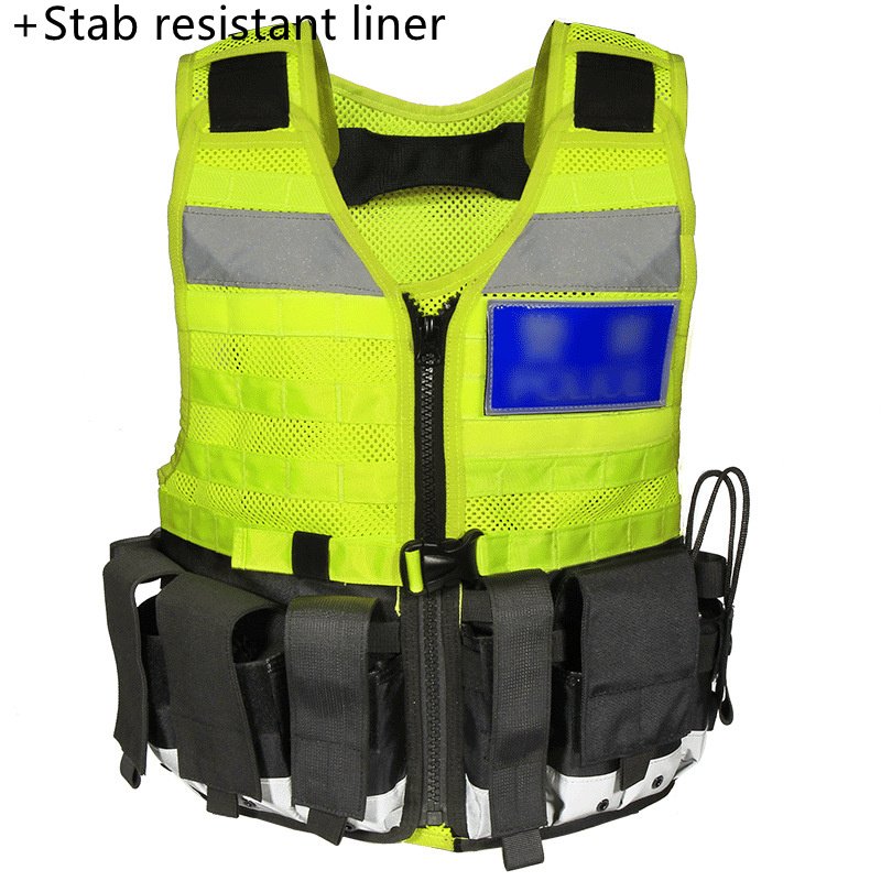 Color: black single vest, fluorescent yellow single vest, black single vest+stab resistant liner, fluorescent yellow single vest+stab resistant liner