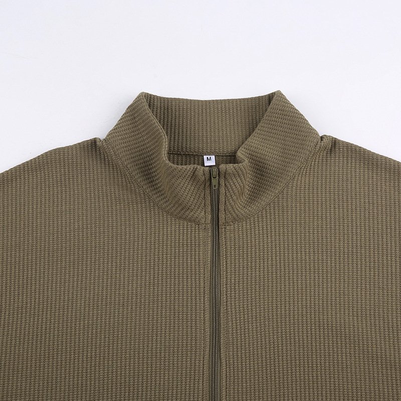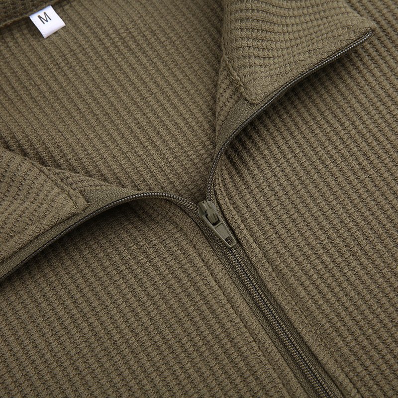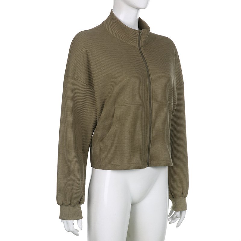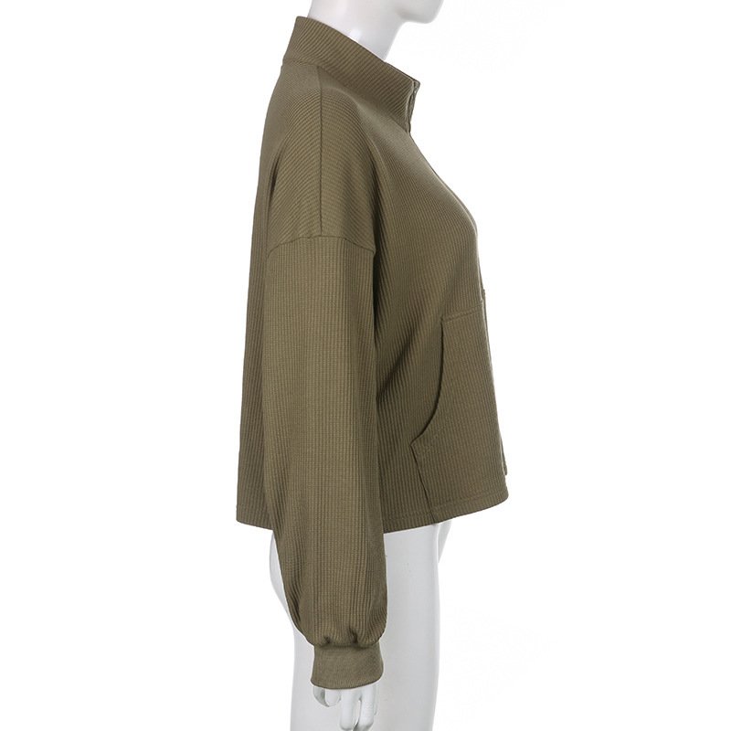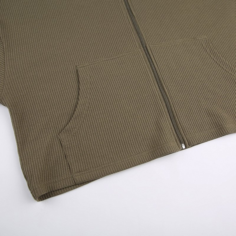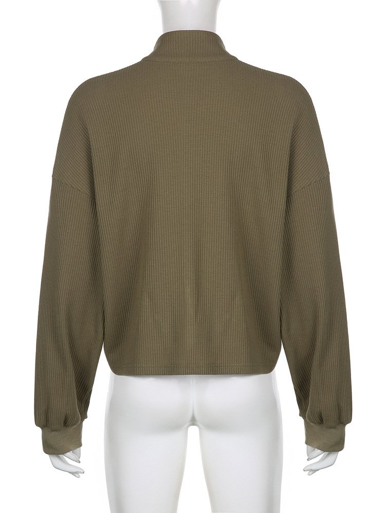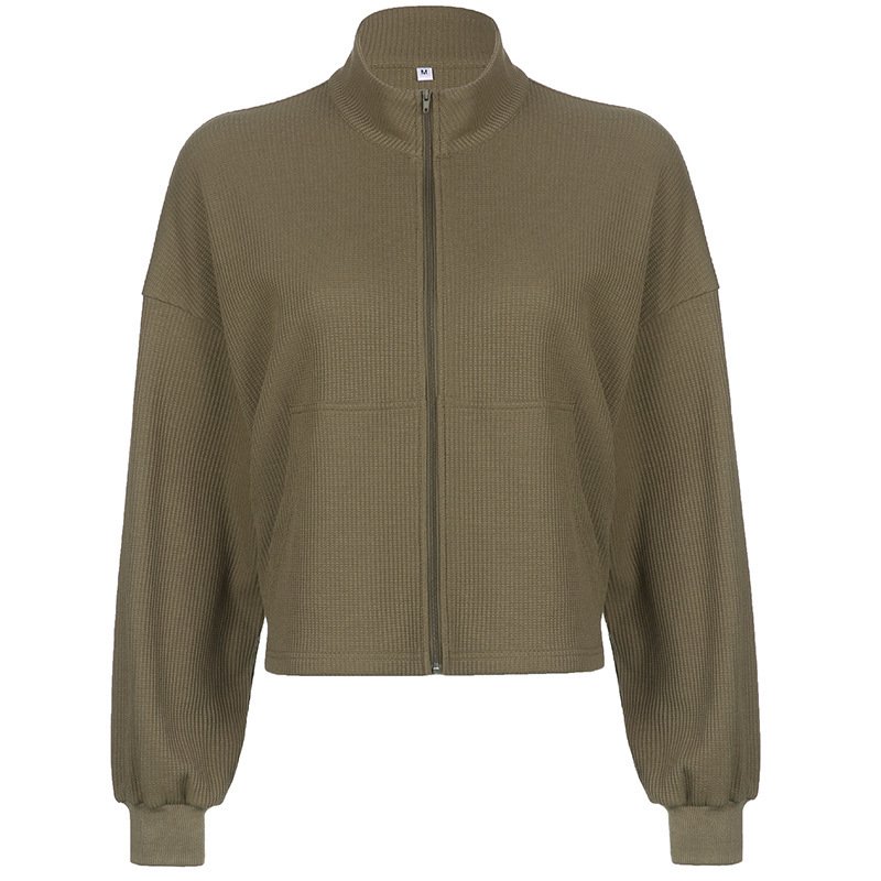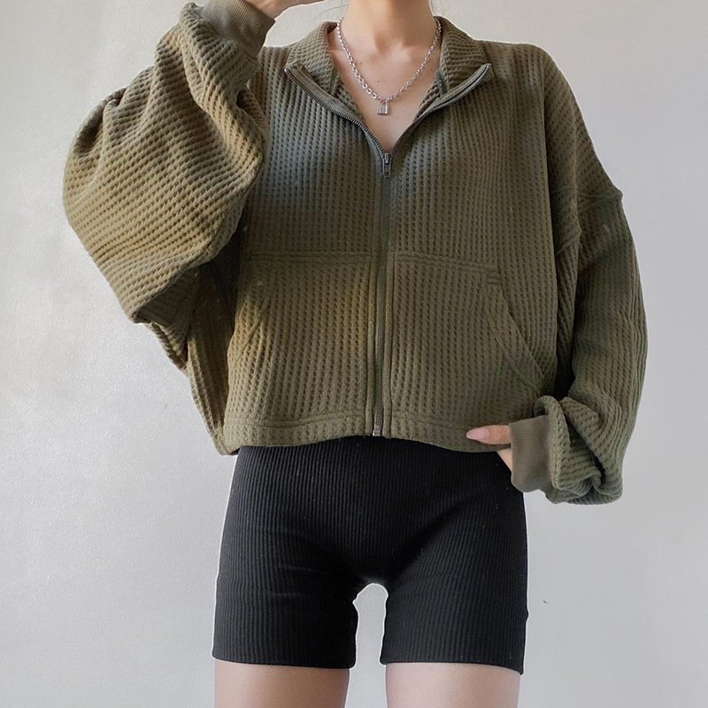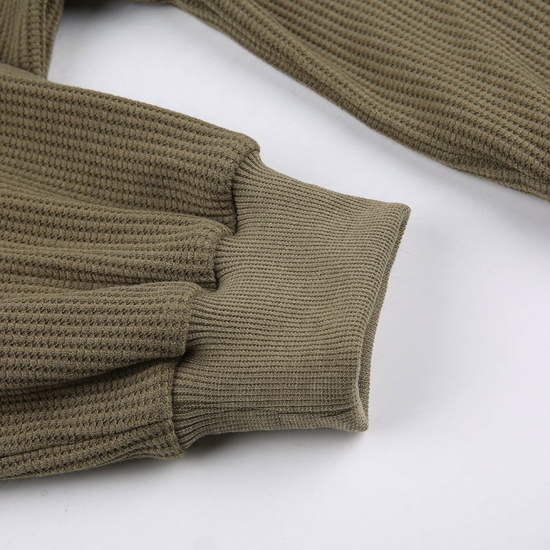 Women’s Army Green Cropped Waffle Sweatshirt